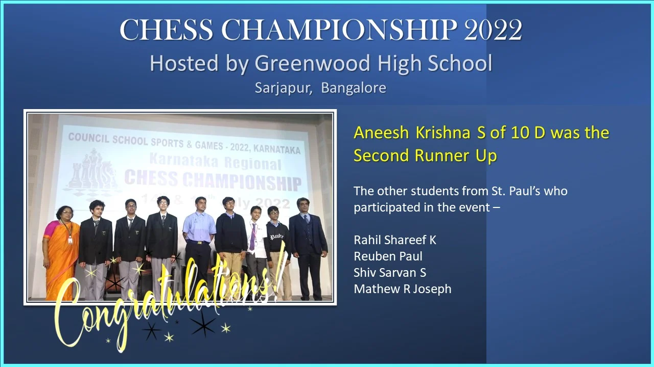 Students at St. Paul’s English School participated in the Inter Presidency Chess Tournament held at Presidency School Banashankari.