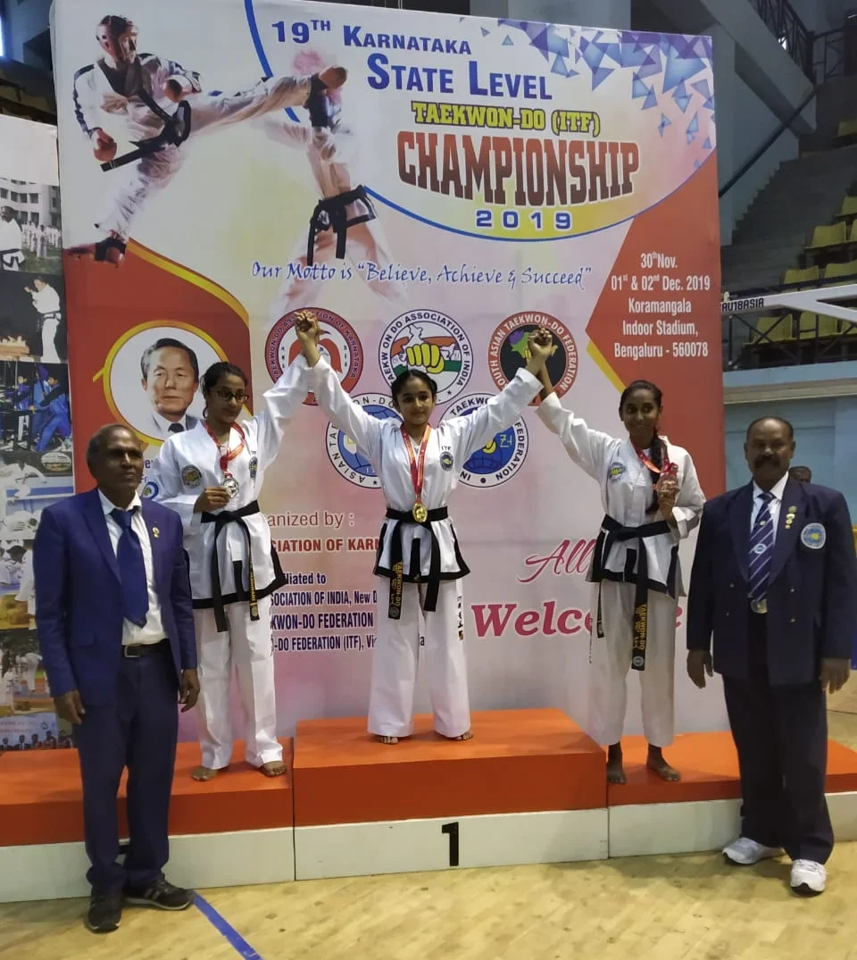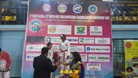 M.S.Shreshta Gokula the won Gold medal in 5th South Asian and silver medal in South zone Taekwon-Do(itf) championship which was held in Bengaluru from 4th to 7th of this month.